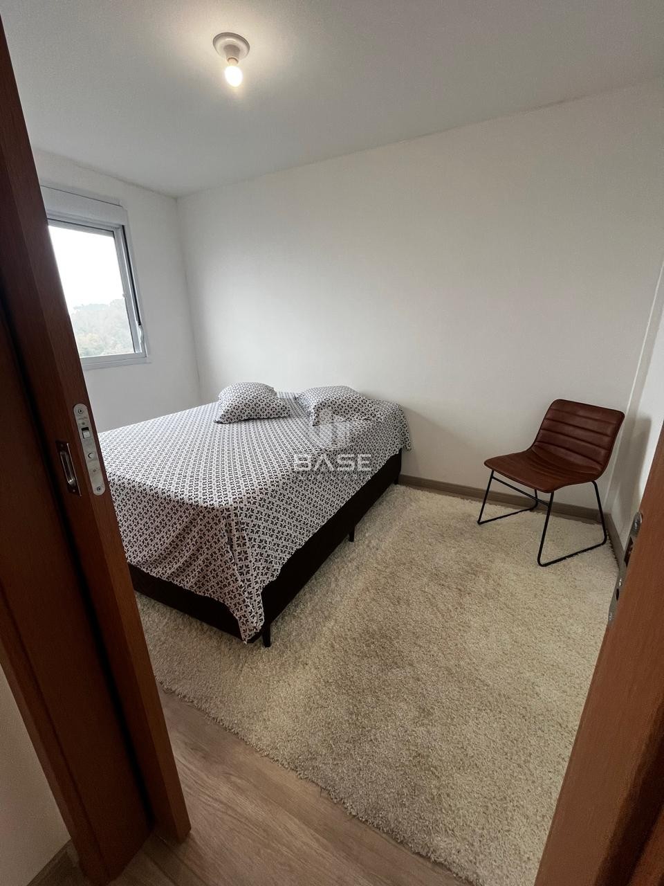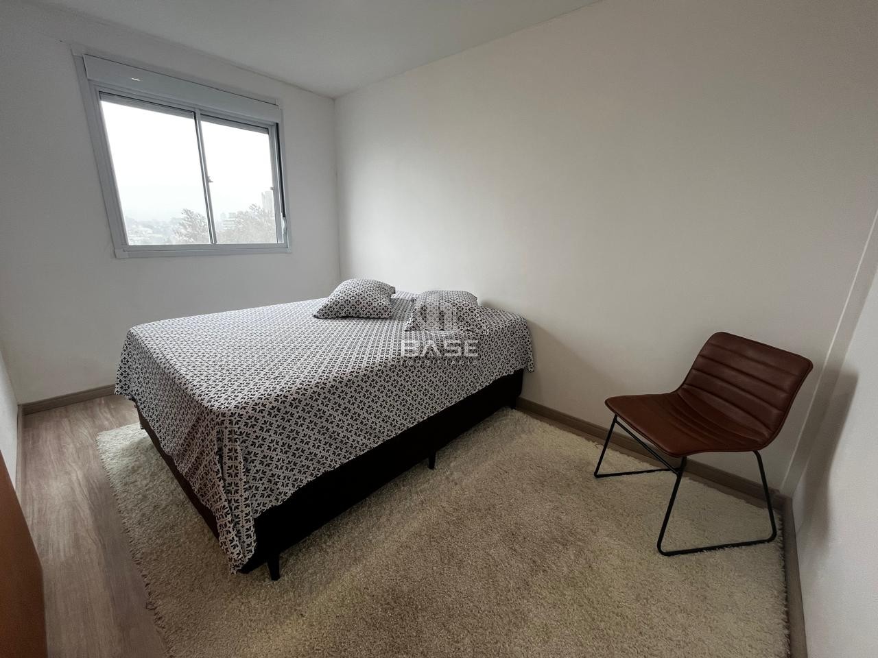 Descrição › Apartamento novo, semi mobiliado, no décimo primeiro andar, imóvel com orientação solar Sul, conta com dois quartos, um banheiro social, sacada, cozinha integrada com living, porcelanato na cozinha, Piso laminado nos quartos, ventilação forçada no banheiro e natural em todos os outros cômodos, acesso controlado por reconhecimento facial no apartamento, na portaria principal, lavanderia, academia e elevador, prédio tem portão eletrônico, apartamento tem uma vaga de garagem.