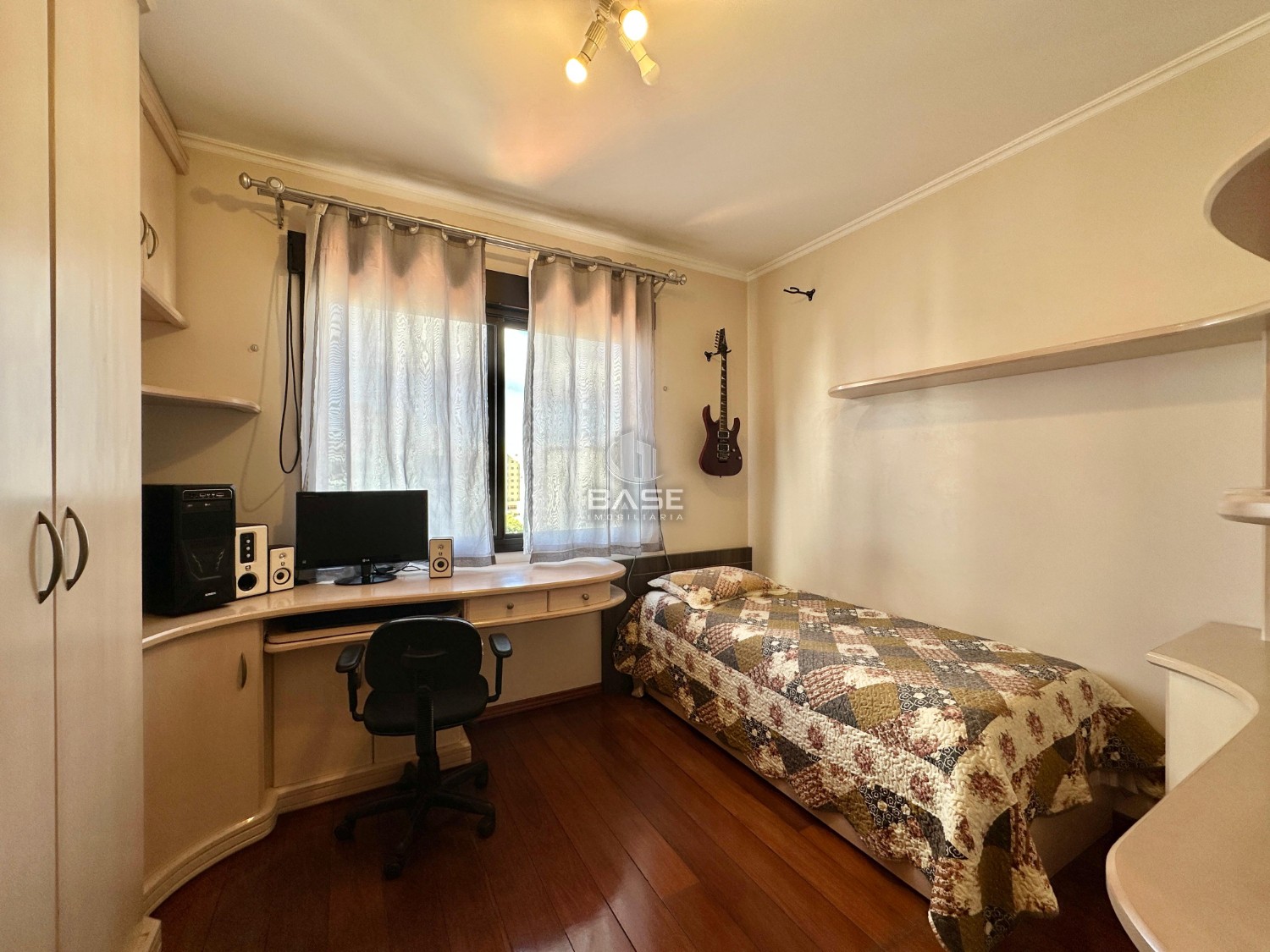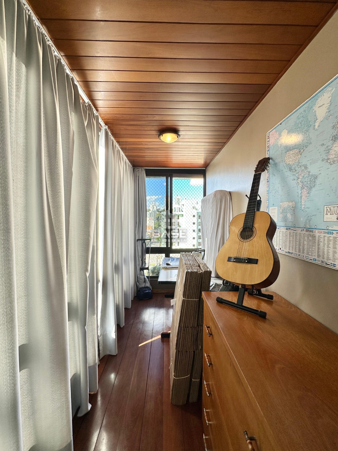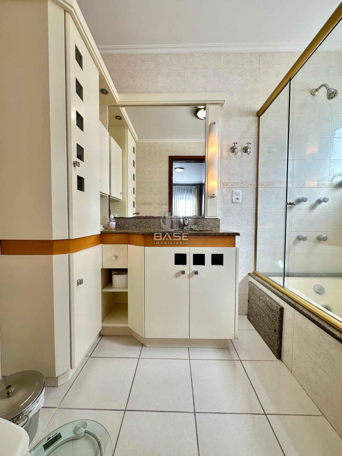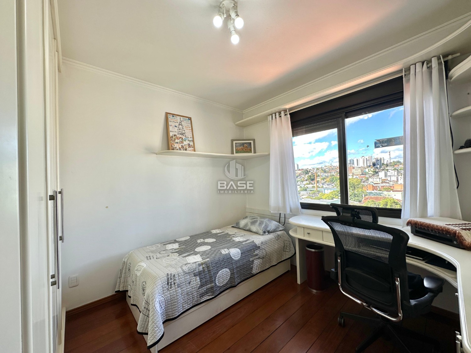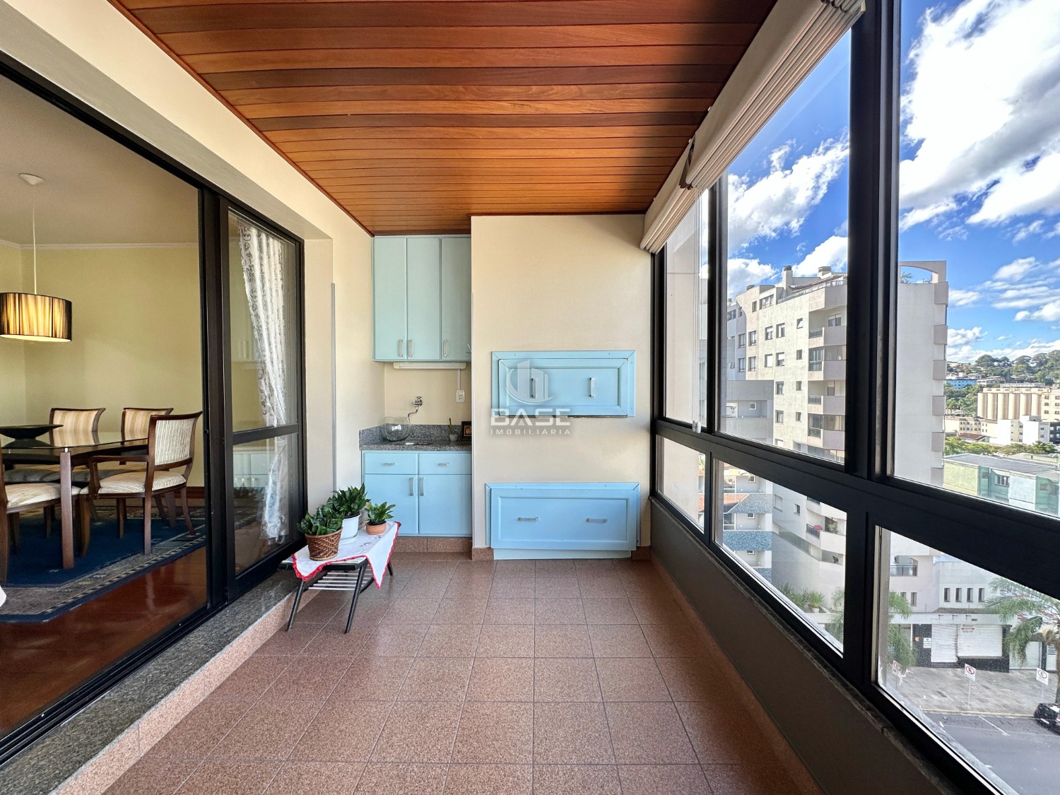 Descrição › Apartamento semimobiliado no Centro de Caxias do Sul, com 3 dormitórios, sendo 1 suíte com hidromassagem, closet que foi transformado em escritório, sala de estar e jantar integradas, sacada fechada com churrasqueira, cozinha, área de serviço separada e lavabo.