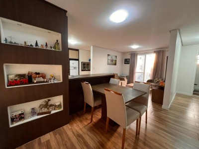 O imóvel conta com 74m² privativos, distribuídos em 2 dormitórios, sala de estar e jantar integradas, cozinha funcional, área de serviço, sacada fechada e uma vaga de garagem